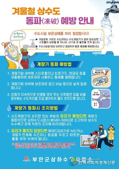 귀하의 집에 물 공급은 겨울을 대비할 준비가 되어 있습니까? 겨울철 수도계량기 동파방지 요령과 급수시설 단열상태도 미리 확인해보세요!