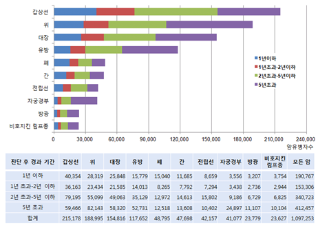 현재 우리나라는 국가암검진 사업을 전반적으로 확대하고 있다. 이러한 영향으로 인해 각종 암의 조기 발견률이 높아지고 있습니다. 조기 발견이 가능해 생존율도 좋아지는 추세를 보이고 있다.