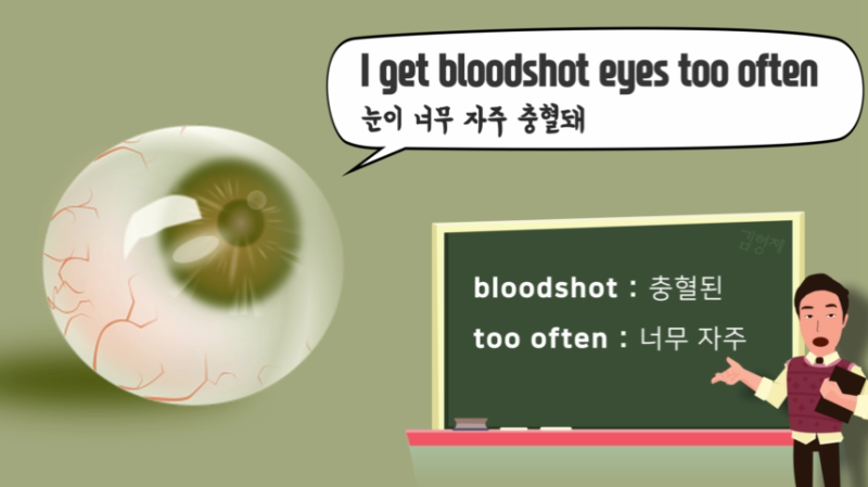 나는 화장실에 가서 거울을 보았다. “눈이 충혈됐어.” 이 표현을 영어로 뭐라고 하나요?