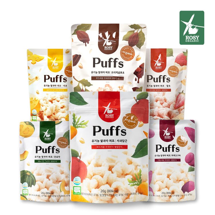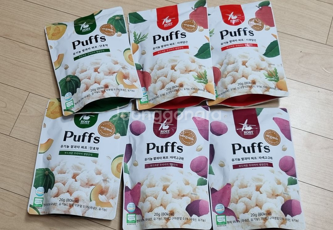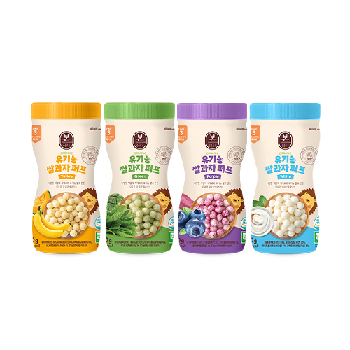 로그 오가닉 퍼프 4점! N0 밀가루와 유기농 현미, 쌀과자로 만든 영양간식!맛은 가볍고 순수하며 원료는 단순하고 명확하며 튀기지 않고 맛이 가볍고 건강합니다.
