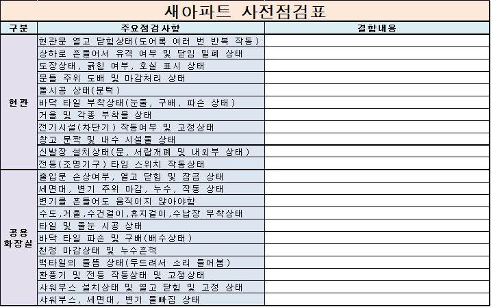 아파트 사전점검 체크리스트 알아보기