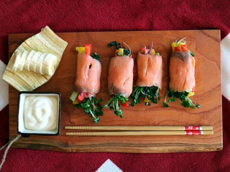 크래커에 넉넉한 양의 크림 치즈를 얹고 하라판을 추가하여 신선한 과일을 강조한 소비뇽 블랑과 페어링하기에 완벽한 간식이라고 생각합니다.